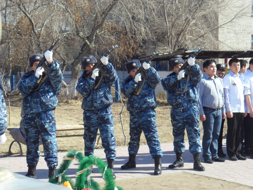 Почтить память о погибших на таджиско-афганской границе собрались организаторы митинга в/ч 5512,а также активисты МК «Жас Отан», кадетская школа-интернат ,студенты ПГПИ.