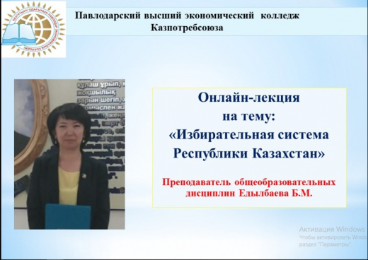 В Павлодарском высшем экономическом колледже Казпотребсоюза для студентов 1 курса организованаонлайн-лекция на тему: «Избирательная система Республики Казахстан».